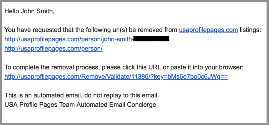 USA Profile Pages collects and posts all kinds of personal information publicly online. Removing yourself from USA Profile Pages requires you to fill out an opt-out form and verify your request. After that, it should be removed immediately.