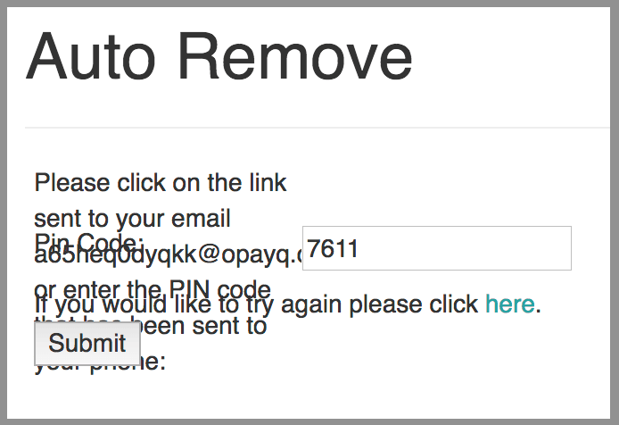 5. You must confirm your request to have your information removed. They will send you a text with a code that you may enter, or you may click the link sent to your email.