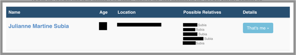 2. Find your result and click “That’s Me”.