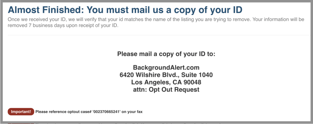 Background Alert is a data broker that collects your information and posts it online. Opting-out and removing yourself from Background Alert requires you to fill out an opt-out form and verify your identity by uploading your ID. After this, your information will be removed within seven business days.
