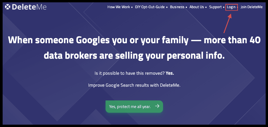 1. Login to your DeleteMe account at joindeleteme.com