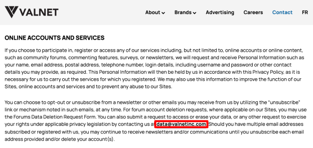 To request the deletion of your Screen Rant account, you need to send Screen Rant an email request to data@valnetinc.com