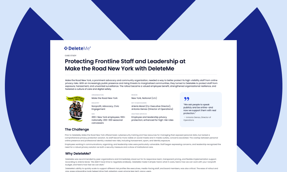 Protecting Frontline Staff and Leadership at Make the Road New York with DeleteMe