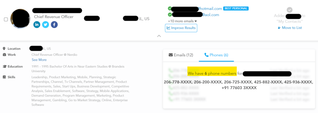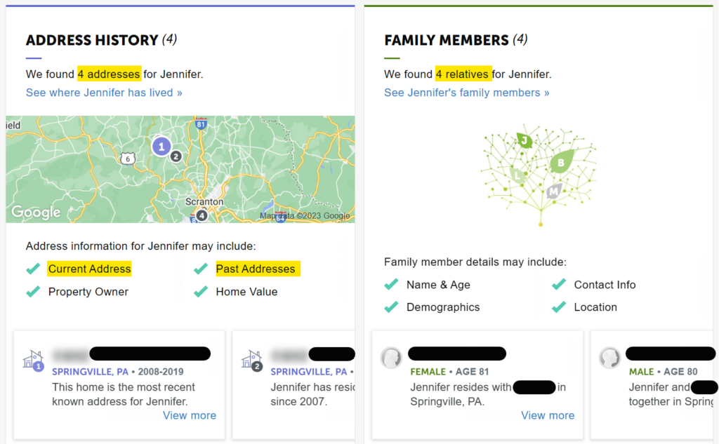 People search sites. Whereas B2B data brokers focus on professional data, people search sites include more personal information, like details on a person’s family, address history, and links to personal social media accounts.