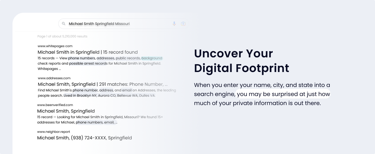 When you enter your name, city, and state into a search engine, you may be surprised at just how much of your private information is out there.